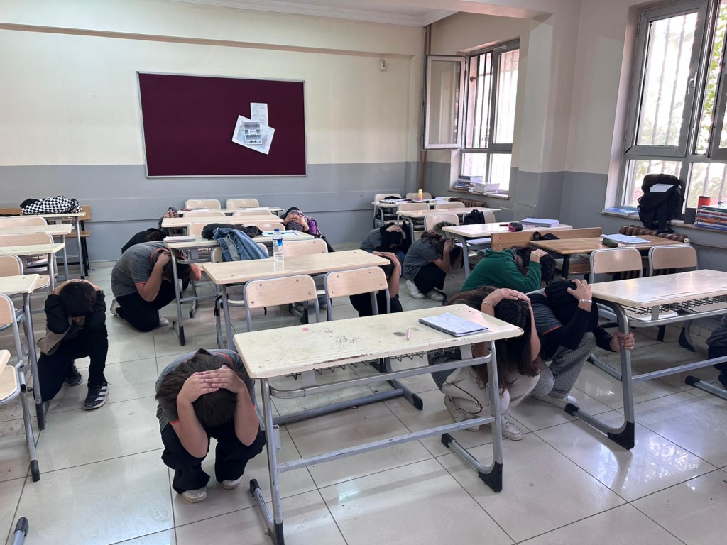 Öğrencilerimize Sivil Savunma Kulübü etkinlikleri kapsamında Afet Farkındalık Eğitimleri sunuldu ve akabinde deprem tatbikatı gerçekleştirdi.